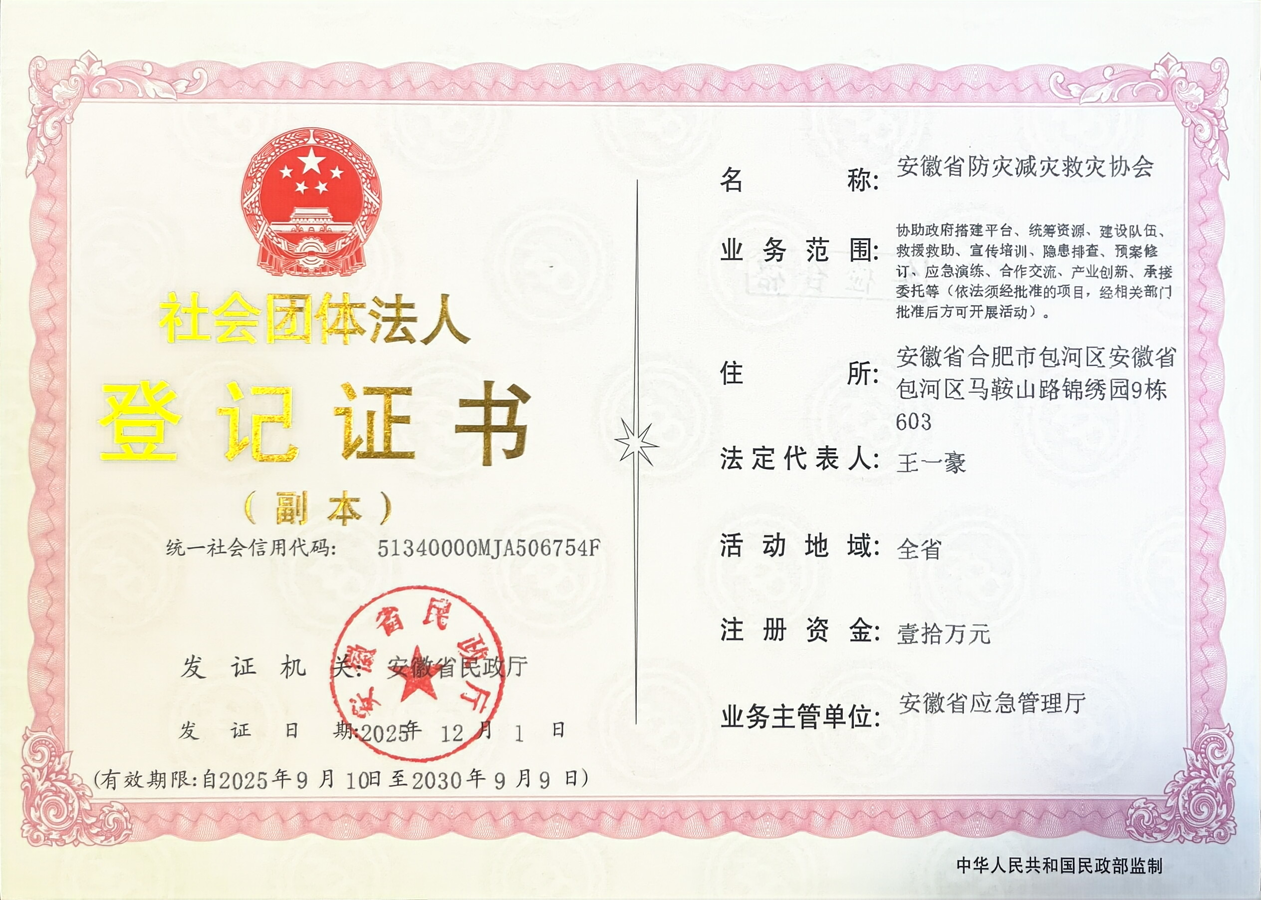 安徽省防灾减灾救灾协会经安徽省民政厅核准成立。安徽省应急管理厅为上级业务主管单位。协会于2020年9月21日取得行政许可。